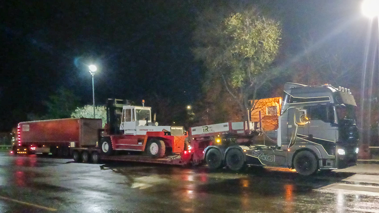The operation involved lifting and relocating a high-value industrial component secured on custom wooden supports. Due to the load’s mass and geometry, the task required precise fork positioning, controlled movement, and continuous stability monitoring throughout handling and transport.