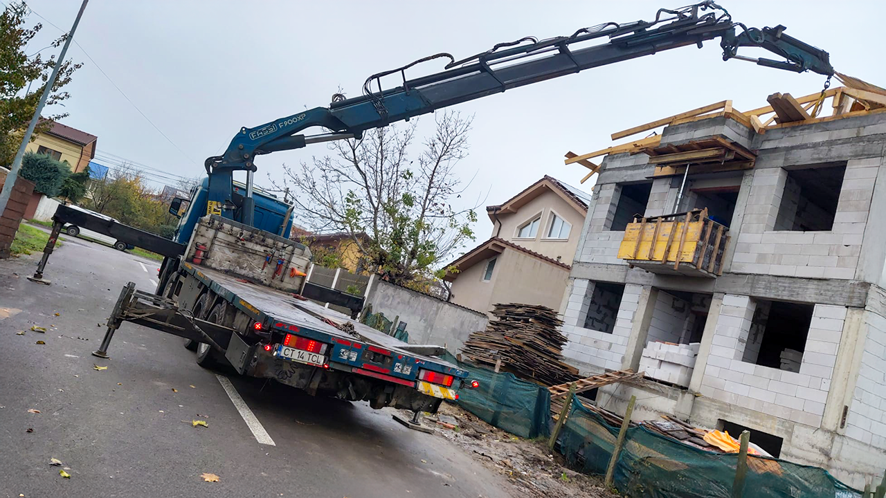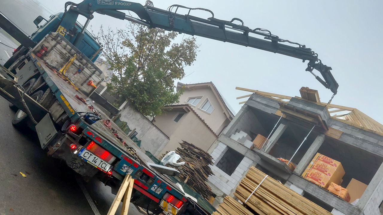 Kran provided a truck-mounted crane (Scania R164G 8x4 FASSI F900XP – 20 t) to support lifting operations on an ongoing residential construction project located on Str. Eduard Caudella, Constanța.